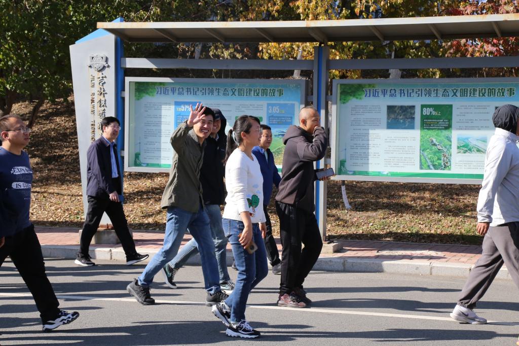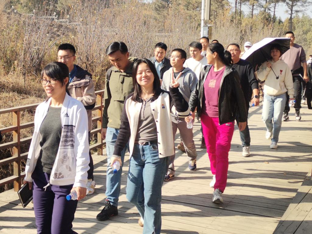 活动现场旗帜飘扬、气氛热烈,教职工们在教学楼门前集结,整装待发,随着领队号令发出,教职工们热情饱满、姿态昂扬,沿健身步道健步快行,伴随着悠扬的音乐,欣赏金秋校园美景,沿途打卡拍照,一路欢声笑语、气氛融洽,感受着健康运动带来的身心愉悦。