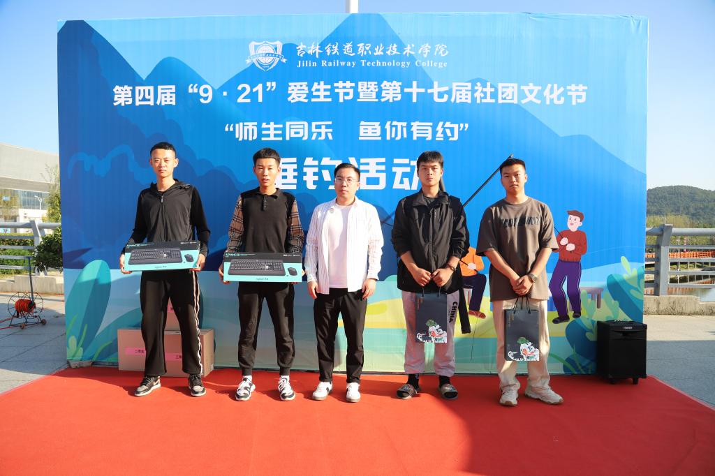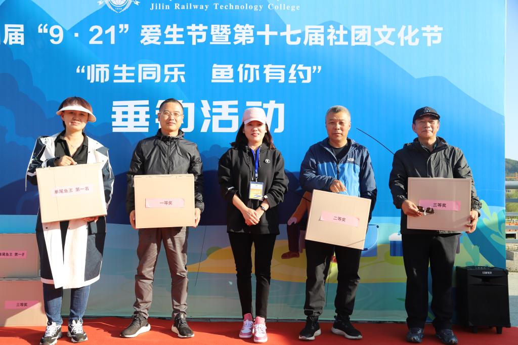本次比赛钓到单尾重量最大的鱼王者获得第一名,按照鱼获总重量取前三名获奖。经过激烈角逐,教师组由城市轨道交通学院副书记李佰玲老师钓到单尾最重鱼王,获得第一名,按照鱼获总重量,东北亚高铁学院张超老师获得第一名,铁道电气学院副书记付德才老师获得第二名,培训与继续教育学院主管吕刚老师获得第三名。学生组由城市轨道交通学院王松洋同学钓到单尾最重鱼王,获得第一名,按照鱼获总重量,智能制造学院胡鑫同学获得第一名,城市轨道交通学院余涛同学获得第二名,东北亚高铁学院张智博同学获得第三名。赛后,参赛师生们把全部鱼获用于“9.21爱生节”的学生用餐中。