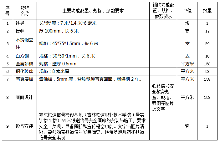 铁道信号检修基地画廊安装项目询价公告
